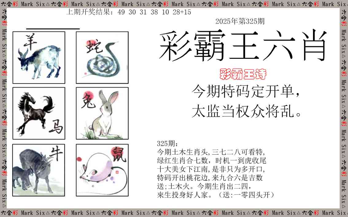 325期 今期鸡狗鼠出特,远想瑶池带玉关开?00 |