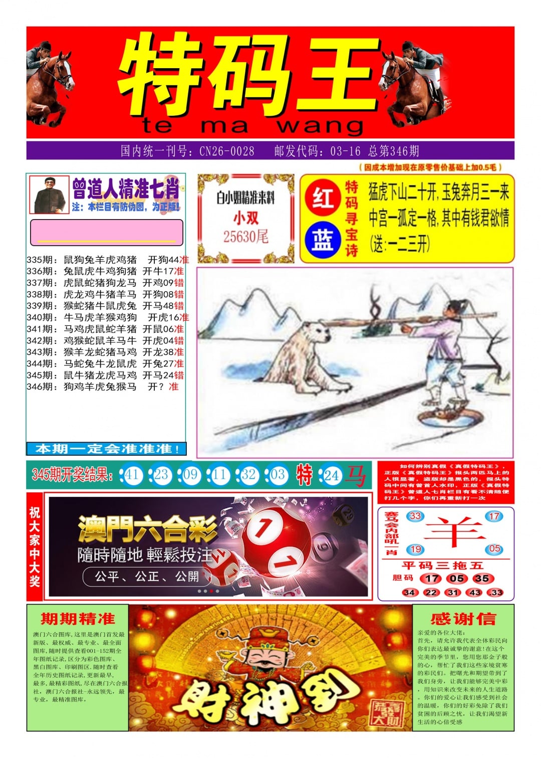 334期平虎→虎猴(2连)→虎猴羊(3连) |